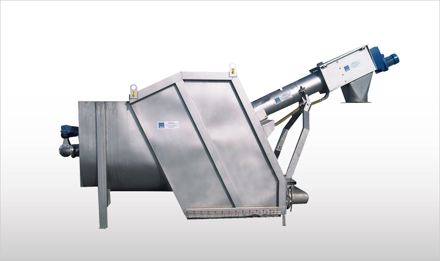 Saveco VFA DM Septage Receiving Stations consist of a dual motor drive system, a perforated plate drum screen complete with screw conveyor, and a compaction zone, all installed in a tank.